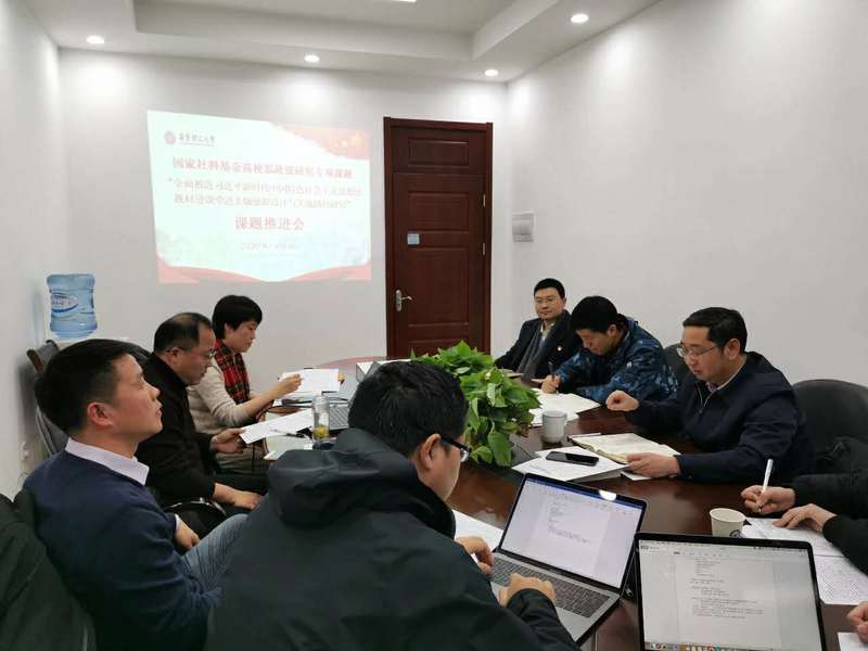 为更好推进习近平新时代中国特色社会主义思想进教材进课堂进头脑,1月11日“全面推进习近平新时代中国特色社会主义思想进教材进课堂进头脑创新设计与实施路径研究”课题推进会在我院顺利举行。华东理工大学党委副书记宋来,课题组成员陈俊傲、徐国民、邱卫东、汪斌锋以及部分教师与学生代表参与了此次课题推进会。会议由徐国民主持。