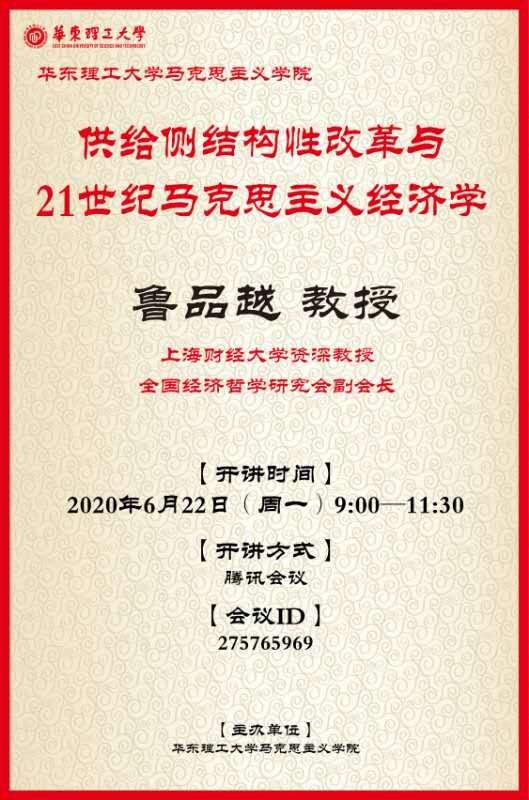 6月22日上午9时,上海财经大学资深教授、全国经济哲学研究会副会长、复旦大学中国研究院特邀研究员鲁品越教授为ylzzcom永利总站线路检测全体师生召开线上视频讲座。会议由ylzzcom永利总站线路检测副院长邱卫东主持,分为主讲人讲授和线上互动交流两个环节。