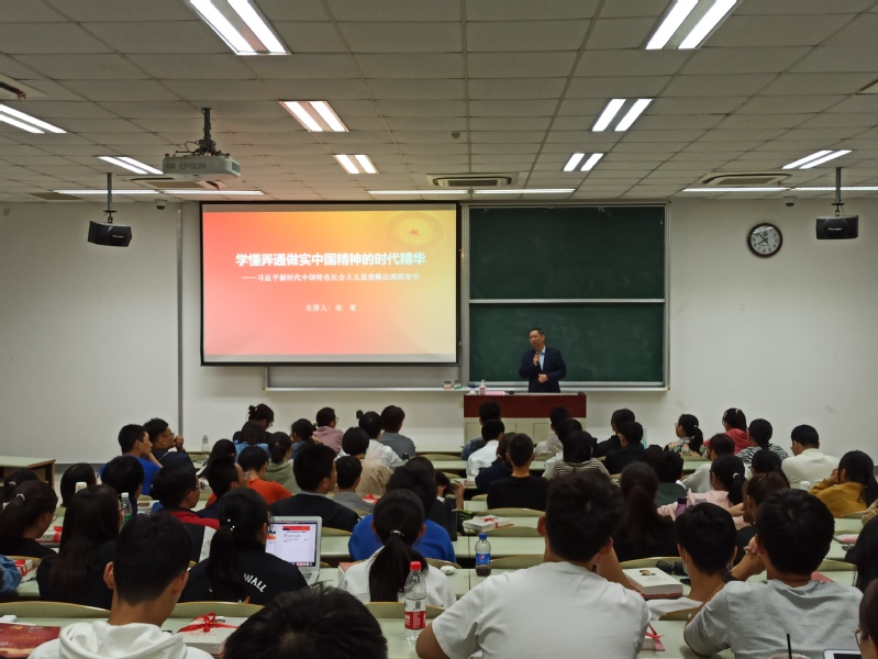 宋来以“学通弄懂做实中国精神的时代精华”为主题为本系列课程做开课导学。他从立足习近平新时代中国特色社会主义思想是党和国家必须坚持的指导思想、深刻把握习近平新时代中国特色社会主义思想丰富内涵和科学体系及坚定不移推动习近平新时代中国特色社会主义思想进头脑三个方面展开讲解。他着重讲述了改革开放以来尤其是党的十八大以来党领导和团结全国各族人民取得的一系列成就,并以城市经济发展的真实数据为例,为同学们直观详细地呈现了党领导下我国社会发展的全新面貌。他通过带领同学们深入学习习近平总书记系列重要讲话精神,结合抗击新冠肺炎的相关先进事迹,生动地为同学们揭示社会主义制度的优越性。他指出,希望同学们深入学习领会习近平新时代中国特色社会主义思想的科学理论,真正从新思想概论课中学有所获。