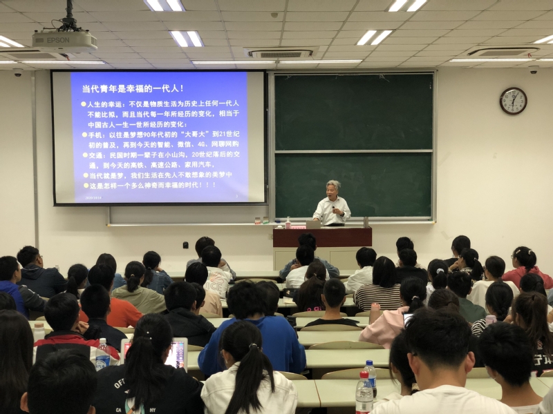 鲁品越以“时代之问与当代青年的使命”为题为同学们教授新思想概论课第一讲。他指出当今时代的物质条件是任何时代所不能比拟的,物质文明的发展使得生活的丰富美好有了更加坚实的基础,同时也为我们带来了许多前所未有的挑战,这是时代给出的问卷,广大青年生逢其时,肩负时代重任,应当志存高远、脚踏实地,为推动社会向前发展贡献青春力量。他结合中美外交关系的最新形势,对当前我们发展所需克服的困难与挑战做出解读,激励同学们勤于学业、奋发向上。
