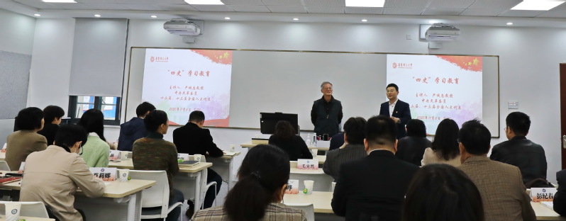 严诚忠将自己的求学访学经历、翻译外交经历、教书育人经历与新中国史、改革开放史、华理校史结合起来,展现了一代人的家国情怀、世界格局和改革创新精神,给大家上了一堂意义深刻的“四史”课。