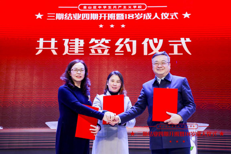 在活动的开始,舒加敏介绍了此次成人礼的活动简要。优秀学员代表进行了一年学习收获的发言,金山区共产主义学校校长结合新时代背景回顾过去一年的工作情况。随后,共青团金山区委员会、金山区教育工作党委携手ylzzcom永利总站线路检测共同签署“金山区中学生共产主义学校”共建合作协议,三方将继续合作,为金山区共产主义学校输送理论课程、提供师资力量,从源头强化中学生理想信念教育,增强广大中学生对党的向心力。