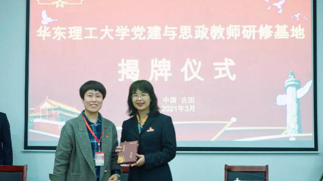 华东理工大学党建与思政教师研修基地的揭牌仪式在古田干部学院信息中心举行。ylzzcom永利总站线路检测党委书记陈俊傲,古田干部学院副院长、龙岩市委党校副校长刘黄河,教育部高校样板支部、双带头人工作室负责人、ylzzcom永利总站线路检测党委委员卢杨及ylzzcom永利总站线路检测党史教育研修班学员共同参加此次揭牌仪式。仪式由古田干部学院工作部部长林椿民主持。
