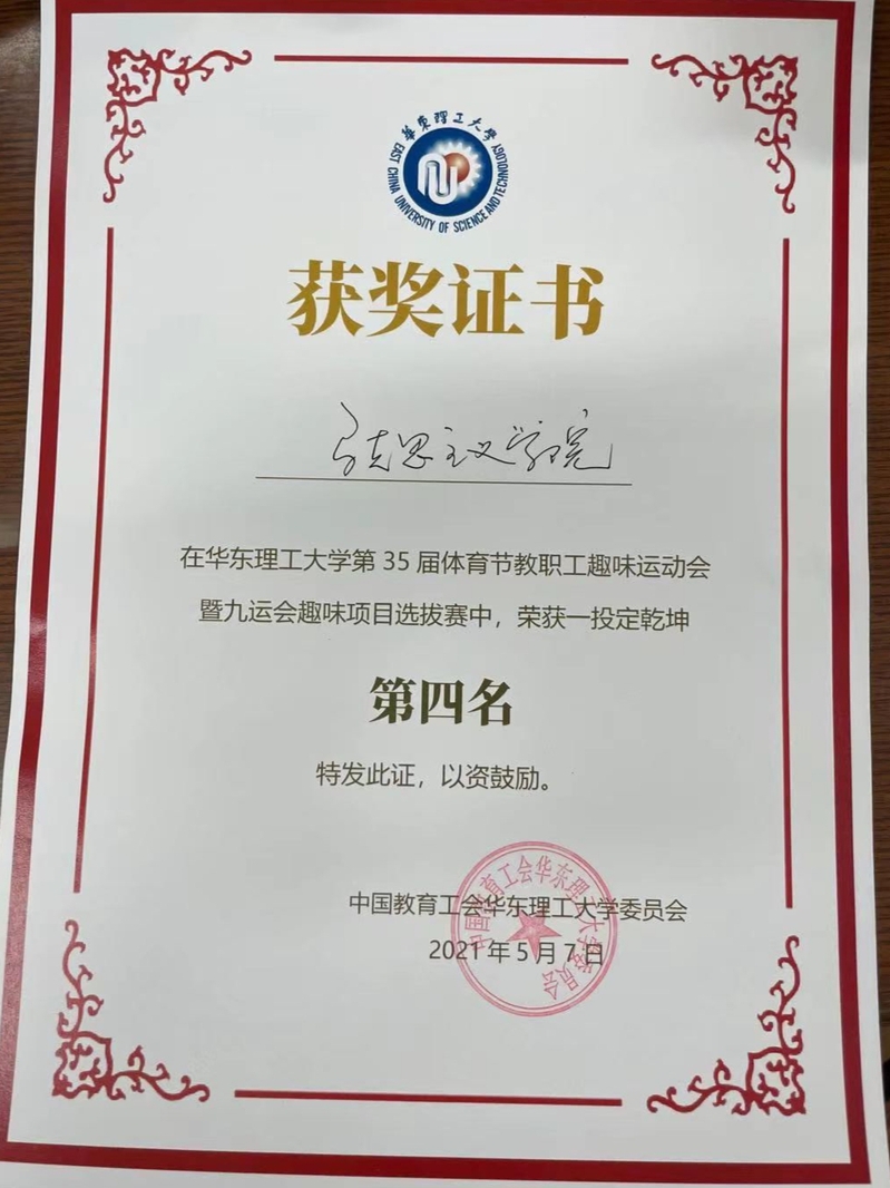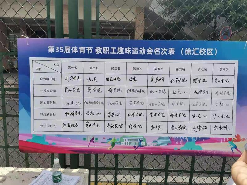 5月7日下午,华东理工大学第三十四届体育节教工趣味运动会在徐汇校区田径场开展,由我院党委书记陈俊傲、副院长徐国民、工会主席刘芳及数名教师共同组成的教师队伍,积极参加了该活动。本次比赛项目有:合力跳长绳、一投定乾坤、同心齐鼓舞、锁定新目标、奋楫同舟进。现在让我们一起来看看运动场上的精彩瞬间吧!