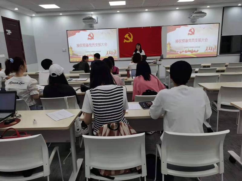 会上,发展对象们逐一宣读《入党志愿书》,并向党组织汇报自身对党的认识、入党动机、本人履历以及在校表现等。随后,入党介绍人逐一介绍发展对象的政治思想、学习、工作生活等情况,并对其能否入党表明意见。高苏沛向全体参会党员报告对各发展对象的现实表现的考察情况,与会党员对发展对象是否符合党员条件进行了充分的讨论并发表意见。经与会正式党员投票表决,大会一致同意接收娄芹芹、林中建、孙文秀、石玉姝、时慧林5名同志成为中共预备党员。