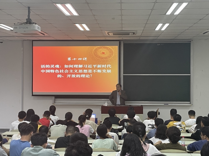 6月2日,我校习近平新时代中国特色社会主义思想概论课在奉贤校区A教101室举行第十四讲。本讲由ylzzcom永利总站线路检测副院长徐国民担任主讲人,近两百名学生参与聆听。