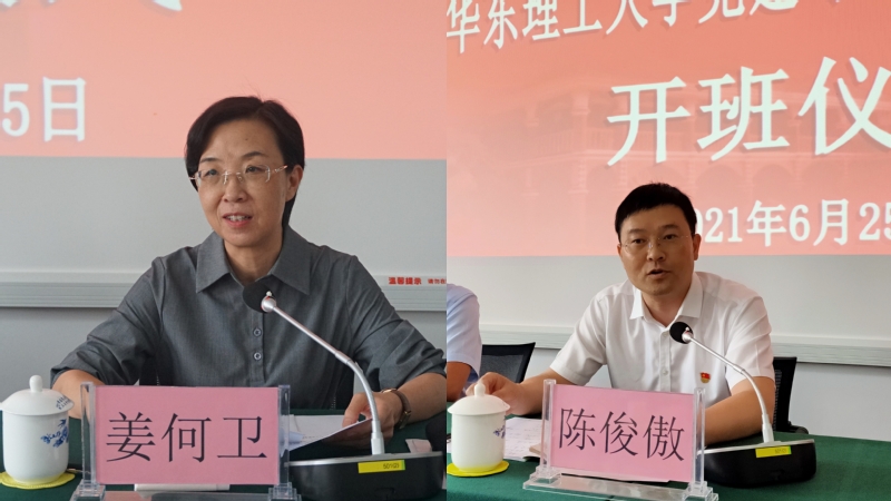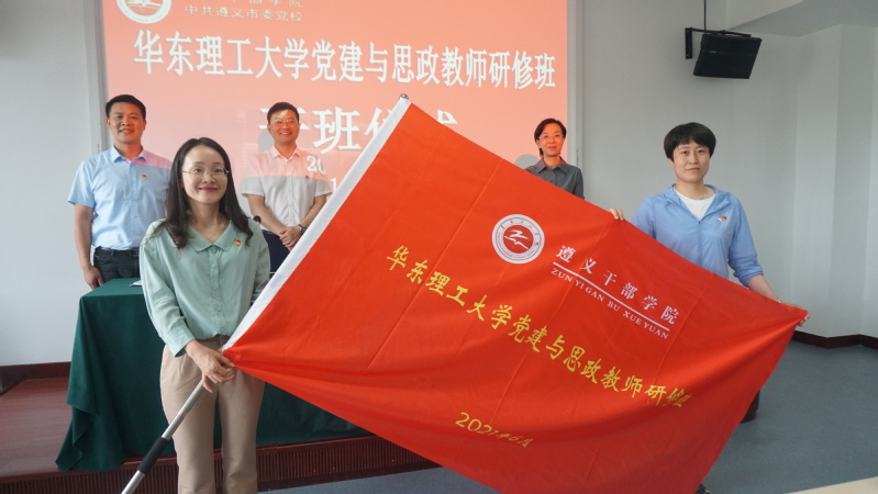 华东理工大学党建与思政教师研修班(遵义)开班仪式在遵义干部学院举行。中共遵义市委党校副校长姜何卫,我院党委书记陈俊傲,党委副书记兼副院长邱卫东,教育部高校样板支部、双带头人工作室负责人、党委委员卢杨,工会主席刘芳及研修班学员共同参加此次开班仪式。开班仪式由邱卫东主持。