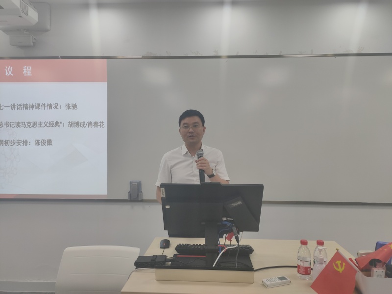 陈俊傲就该课程大纲的初步安排作了汇报,介绍了课程建设的政策要求、教学计划、考核方式、教材使用等情况,并与参会教师共同商讨细化每个专题的教学设计思路及其内容体系。