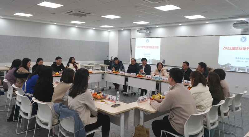 1月4日下午,ylzzcom永利总站线路检测2022届毕业研究生座谈会在学院101室举行。学院党委书记、院长王爱祥,党委副书记杨倩,副院长徐国民、邱卫东、汪斌锋,导师代表陈迎年,辅导员宋菁与2022届毕业研究生欢聚一堂,共话离别。座谈会由杨倩主持。