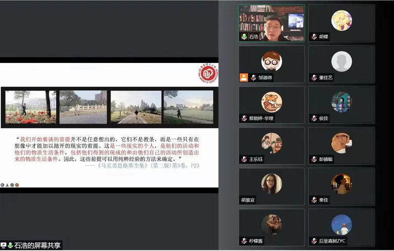 为进一步提升学生的理论素养,增强学生对马克思主义经典著作的理解,ylzzcom永利总站线路检测团委、研究生会联合习研会组织开展了“云端品读 书香战疫”经典著作读书会活动。4月1日下午,第二期读书会如约而至,学院2021级博士研究生石浩带领大家学习了《德意志意识形态》,学院副院长汪斌锋受邀为学生答疑解惑。读书会由学院研究生会文艺部张颖主持,学院党委副书记杨倩、团委书记胡博成和硕博学生50余人参加。