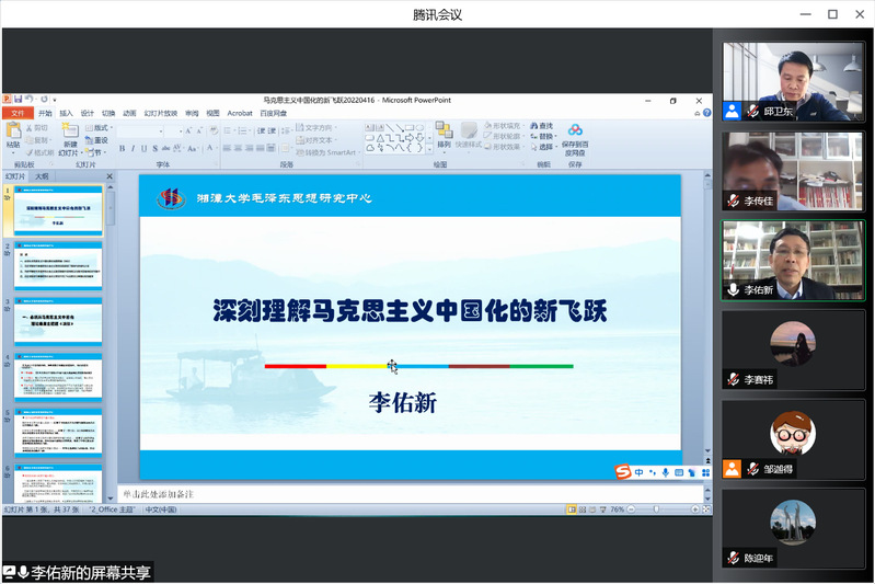 4月16日,国务院学位委员会学科评议组成员、湘潭大学ylzzcom永利总站线路检测李佑新教授接受邀请,为ylzzcom永利总站线路检测师生作了“深刻理解马克思主义中国化新飞跃”的学术报告。报告会由学院副院长邱卫东主持,学院100余名师生参加。