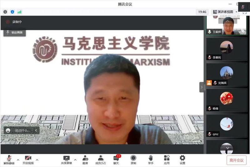 会上,王爱祥回顾了2022年上半年学校和学院疫情防控整体工作,并对驻扎在校内疫情防控一线和社区志愿服务的全体教职工表示感谢。在疫情防控大背景下,他对学院思政课教学、理论学习、主题报告、课题研究、学生培养和就业工作等方面作了总结,指出学院上半年线上思政课教学覆盖了3万多人次,出色的线上教学质量得到了学校的认可,高质量的学术活动丰富了师生的理论素养和水平, 学生培养和毕业生就业工作仍需各位导师和全体教师继续发挥积极作用。