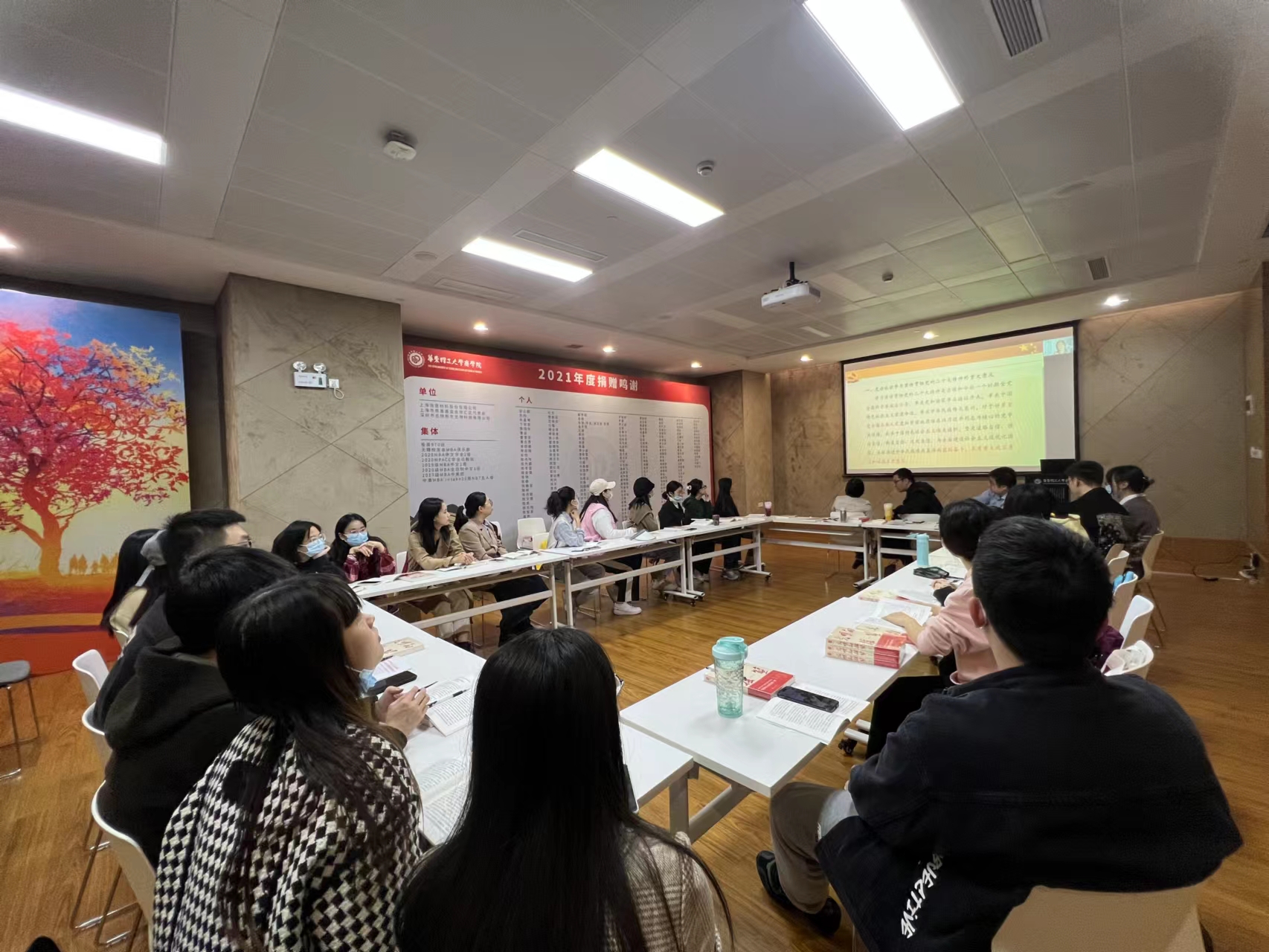 为深入学习宣传贯彻党的二十大精神,11月9日下午,学院徐汇校区研究生党支部与校习研会合作开展了主题为“聚焦党的二十大 新时代 新征程”党的二十大精神学习专题组织生活会。校党委研工部戎思淼,学院党委副书记杨倩、团委书记胡博成、徐汇校区研究生党支部全体党员共同参加。