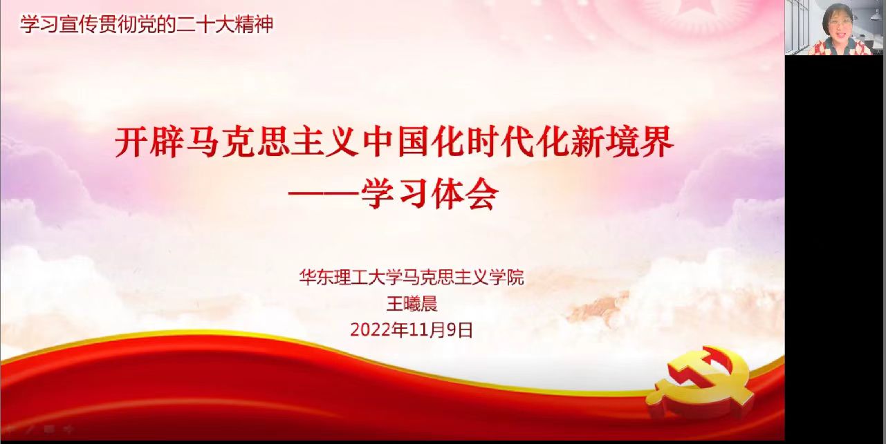 学院博士研究生王曦晨、硕士研究生陈蕾以党课宣讲的形式分享了他们学习党的二十大精神的体会。王晨曦的宣讲主题为“开辟马克思主义中国化时代化新境界”,她用生动的语言和严谨的逻辑,就研究时代重大课题阐释了如何不断推进马克思主义中国化时代化问题。陈蕾从“建设现代化产业体系”这一问题出发,详细介绍了实体经济的概念、地位和发展方向,讲述了新发展格局、现代化产业体系和实体经济的内在逻辑联系。