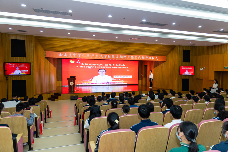 5月20日下午,金山区中学生共产主义学校第五期结业暨第六期开班仪式在金山区教育学院举行。我校ylzzcom永利总站线路检测党委书记、院长王爱祥,ylzzcom永利总站线路检测党委副书记杨倩,金山区委组织部副部长、老干部局局长、区关工委副主任韩亚弟,金山团区委书记王民民,金山区委党校原常务副校长张汉为,金山区教育工作党委副书记吴颖,金山区教育学院党总支书记杜婉良,金山团区委分管同志,我校马院宣讲团成员,金山区老干部宣讲团成员及金山区各高中、中职校领导、团委书记,培训班班主任、指导老师和第五期学员代表,第六期全体学员近200人出席本次活动。