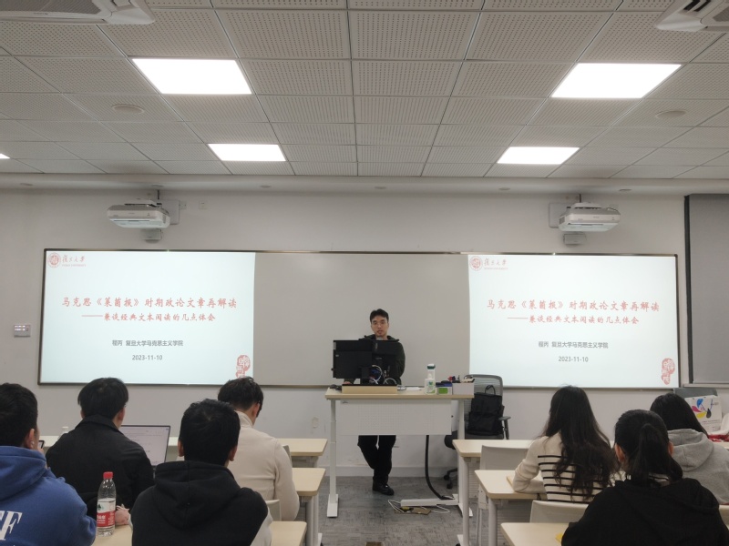 11月10日下午,ylzzcom永利总站线路检测在 109 教室举办“经典著作读书会”之“经典青咖讲”活动,复旦大学ylzzcom永利总站线路检测程丙老师受邀作了主题为“马克思《莱茵报》时期政论文章再解读—兼谈经典文本阅读的几点体会”的经典学习分享。本次活动由学院团委书记胡博成主持,学院各年级学生50余人参加。