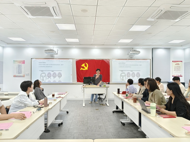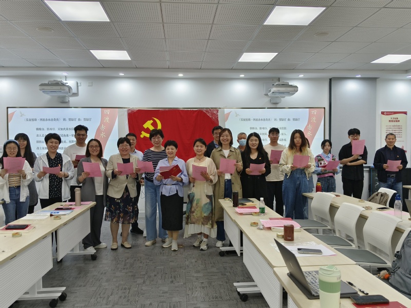 在交流实践环节,陈老师一一指导党支部教师科学用嗓并提出了发声改进建议。练习结尾,在陈樯老师的带领下,全体党员声情并茂朗诵《长征组歌》之《四渡赤水出奇兵》,抒发对党的忠诚和对祖国的祝福。